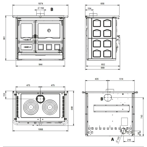 Schéma de la Cuisinière à bois Rosa XXL.16 – Maiolica
